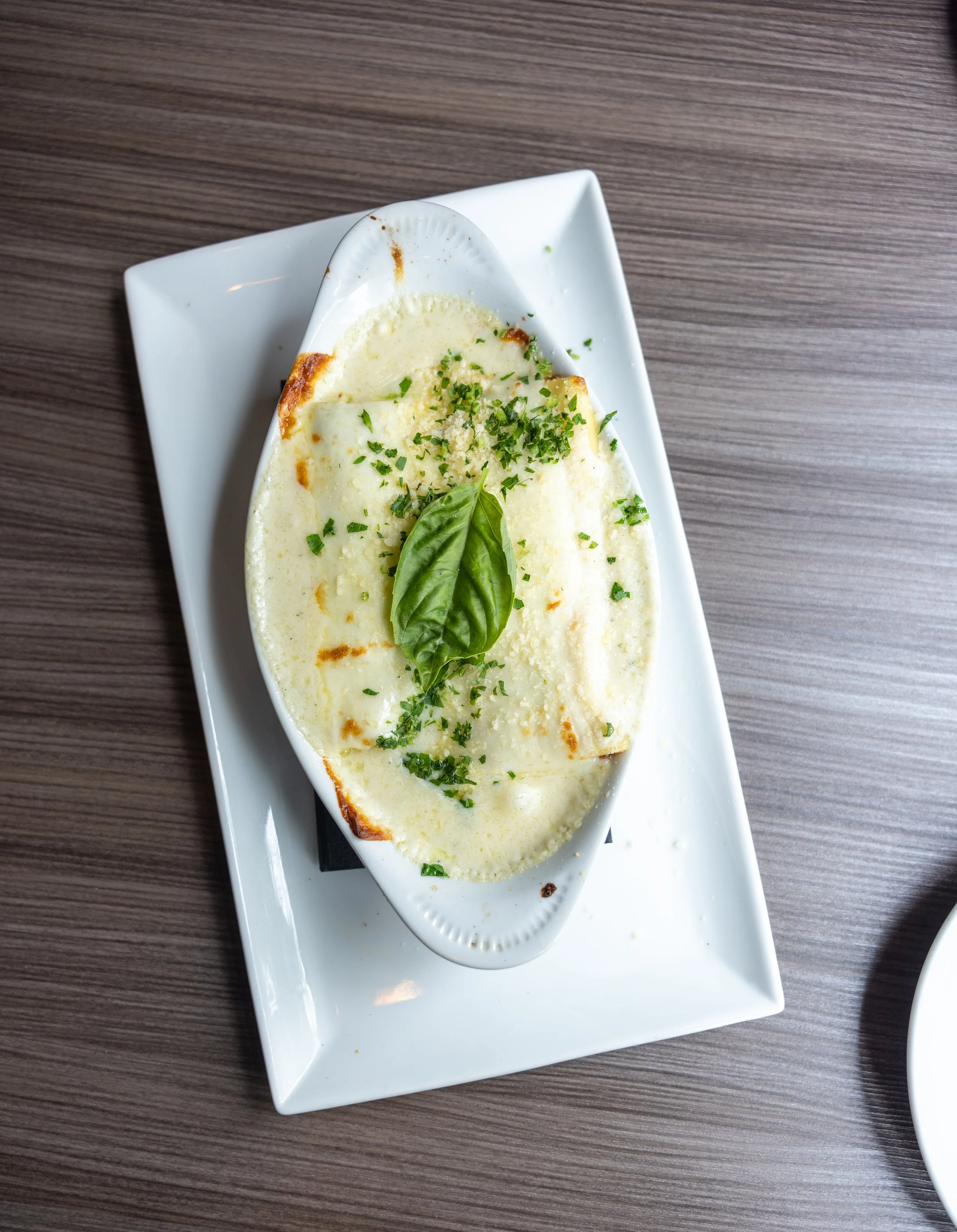 Rolled pasta stuffed with our 3 cheese blends, spinach, and meat served in white or red sauce