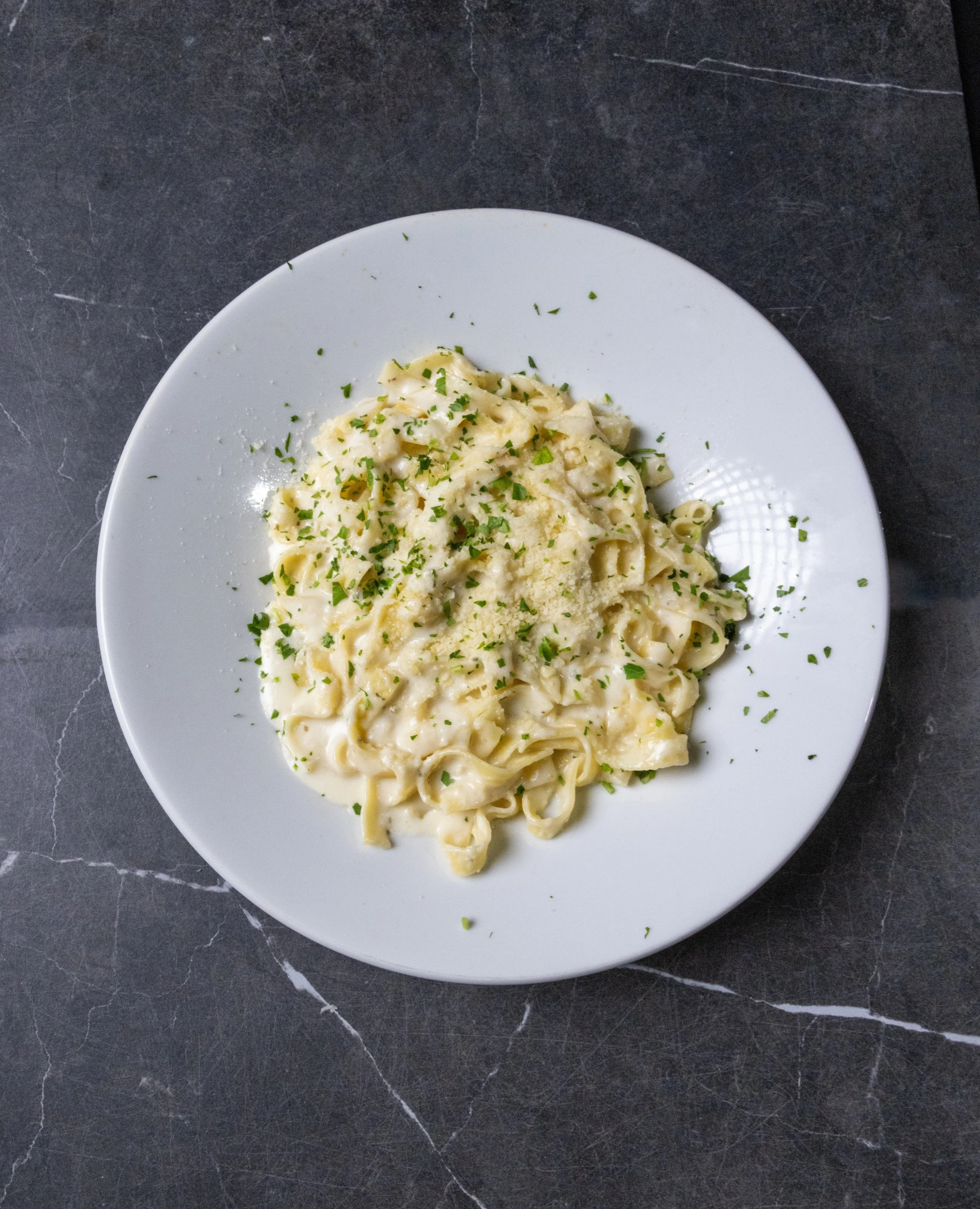 A classic pasta dish made with Dovini’s Alfredo sauce